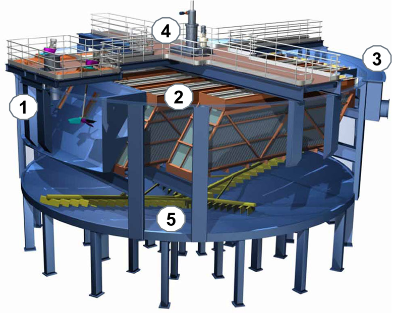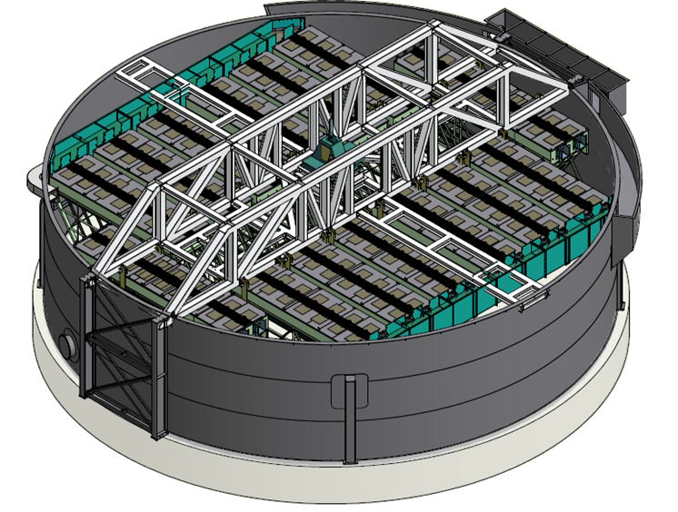 另外,关于浓缩机的池体,在中国采用混凝土基础的池体比较多,主要是中国的土建施工成本相对比较低,国外的话,采用钢结构池体的相对多一些,且在寒冷地区,浓缩机是需要放在厂房内的。